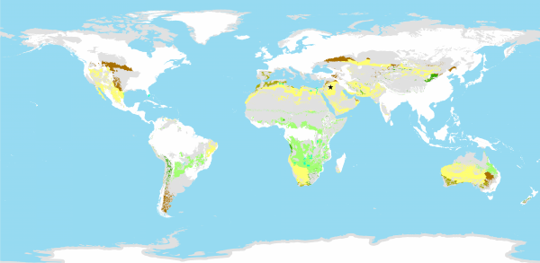 This mapping of rangelands was produced by focusing on seven of the 14 global biomes categorised by WWF in their mapping of terrestrial ecoregions around the world. This map of rangelands is combined with other existing global datasets on different themes, to produce a mapping of that data “for rangelands.”